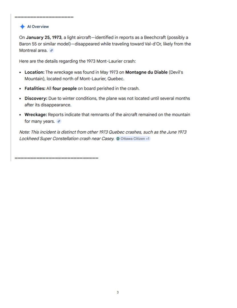 Accident - Montagne du Diable 1973