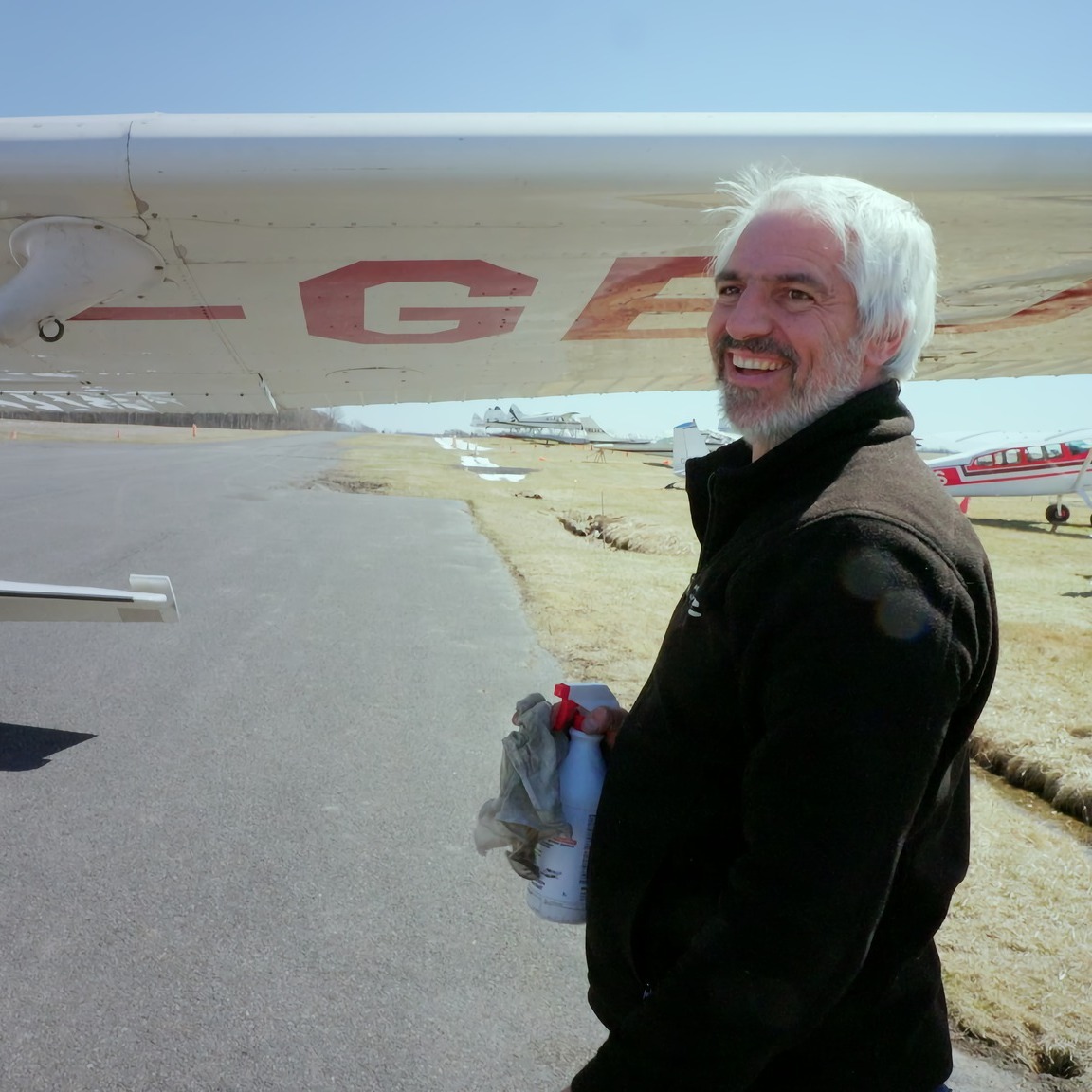 La famille Cloutier Chez les Cloutier, l’aviation est une histoire de famille. Pilote et mécanicien durant l’âge d’or de l’aviation de brousse au Québec, Raymond père transmet très tôt sa passion de l’aviation à ses deux fils. Patrick et Raymond fils – dit Junior – obtiennent chacun leurs ailes de pilote avant même d’avoir l’âge de conduire une voiture. Aujourd’hui, Patrick est pilote de ligne pour Air Transat. Dès que son horaire se libère, il revient aux sources pour vivre sa passion en compagnie de sa blonde, Emmanuelle St-Hilaire. Pour sa part, Junior est mécanicien à temps plein. Avec son partenaire Jacob Hébert, il s’occupe aujourd’hui de l’entreprise familiale Ray Air, située à l’aéroport de St-Hyacinthe, qui assure la maintenance d’une multitude d’aéronefs. Quant à Raymond père et son épouse Nicole, surnommés Pépé et Mémé, ils profitent d’une retraite bien méritée… mais ont du mal à s’éloigner de l’atelier. |