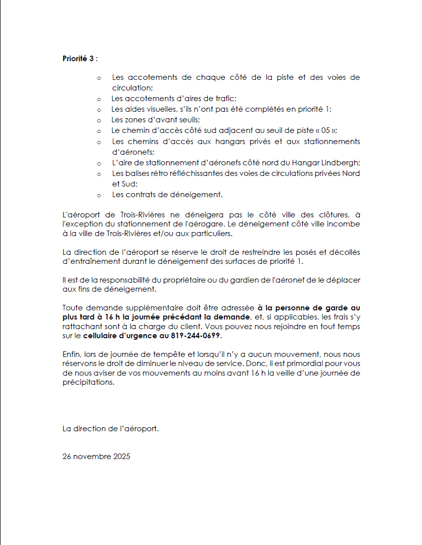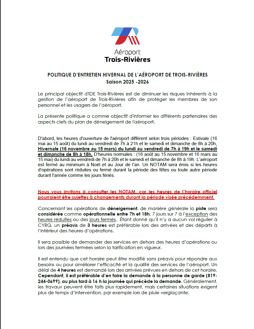 Politique d’entretien - aéroport de Trois-Rivières - Aviateurs Québec